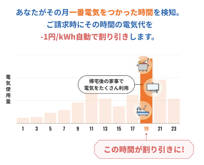 これは、1日の中で電気料金が一番高くなった時間帯を自動で割引してくれるます。